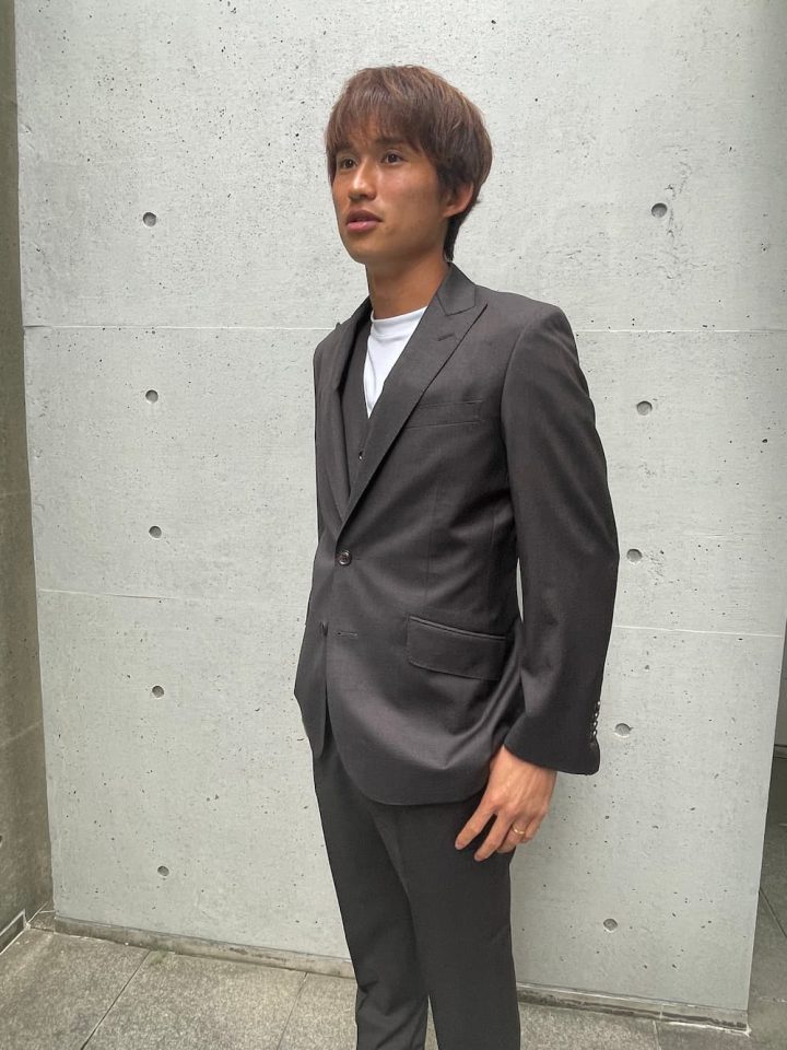 自分の理想が詰まったこだわりのおしゃれなスーツをオーダーしたいとご来店された杉森選手。細身ですらっとしたスタイルの杉森選手には、スリーピーススーツをご提案。ベストで美しいシルエットを叶えつつ、自由に組み合わせを変えられることから大変お喜びいただきました!