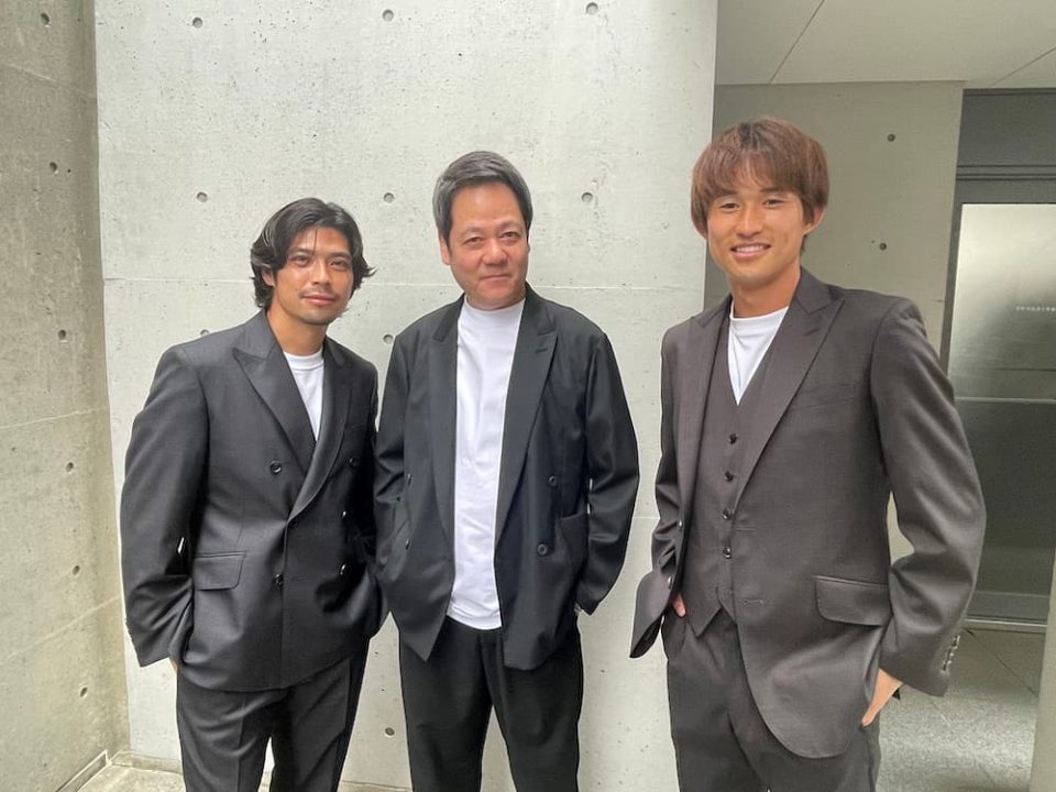 納品前の試着時には、ご一緒に来店された杉本選手とfromGオーナーとキメキメの一枚を撮影しました!男前3人のスーツ姿は絵になりますね♩