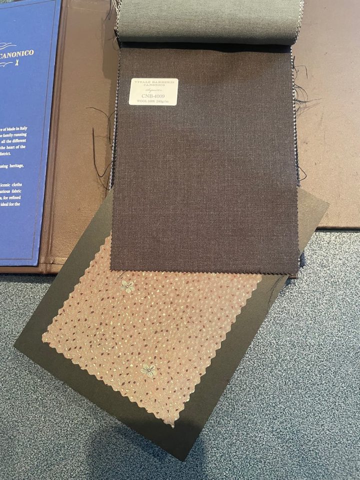 生地は杉森選手のパーソナルカラーにぴったりのブラウンカラーをご提案。ライトブラウンよりはダーク寄りだけど暗すぎない絶妙なブラウンカラーでおしゃれさを表現しています。