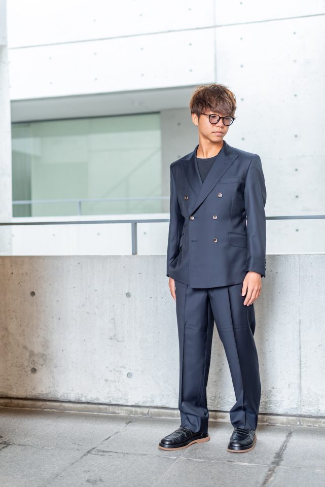 主張しすぎず地味すぎない、上品な1着を仕立てたいとご相談いただいた徳島ヴォルティス児玉選手。そんな児玉選手にはダブルスーツをご提案!知的さと上品さ、さりげないオシャレさを兼ね備えたネイビーのダブルスーツは想像以上にジャストフィットでとても喜んでいただきました!日々覚悟を持って挑むプロ選手のスーツ姿はうっとりしますね♩